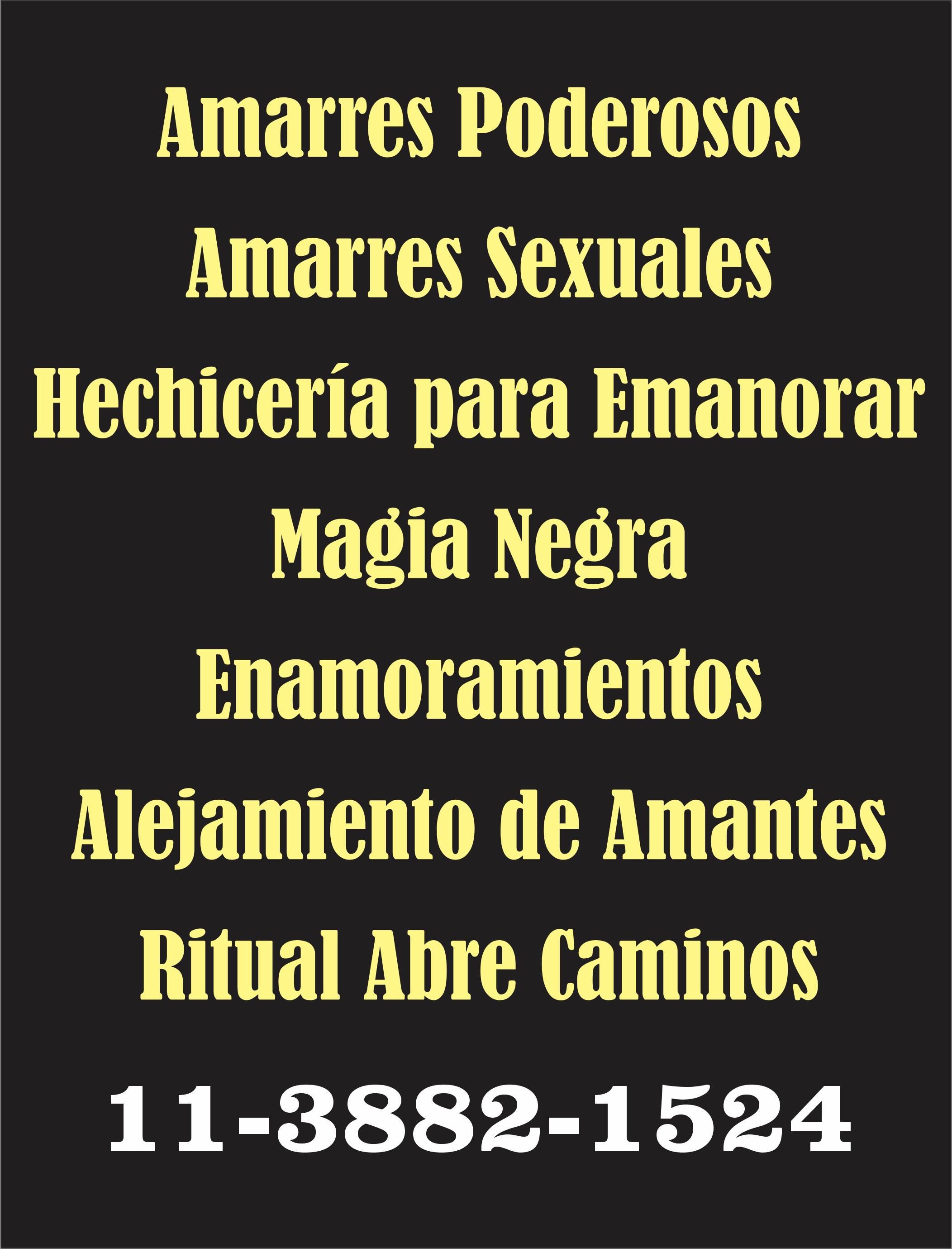 Experto en todo tipo de Amarres y Hechizos de amor. Atraigo amores imposible, retiro amores tormentosos, ligo el amor verdadero, amanso amores rebeldes y recupero esa pareja que le abandonó.